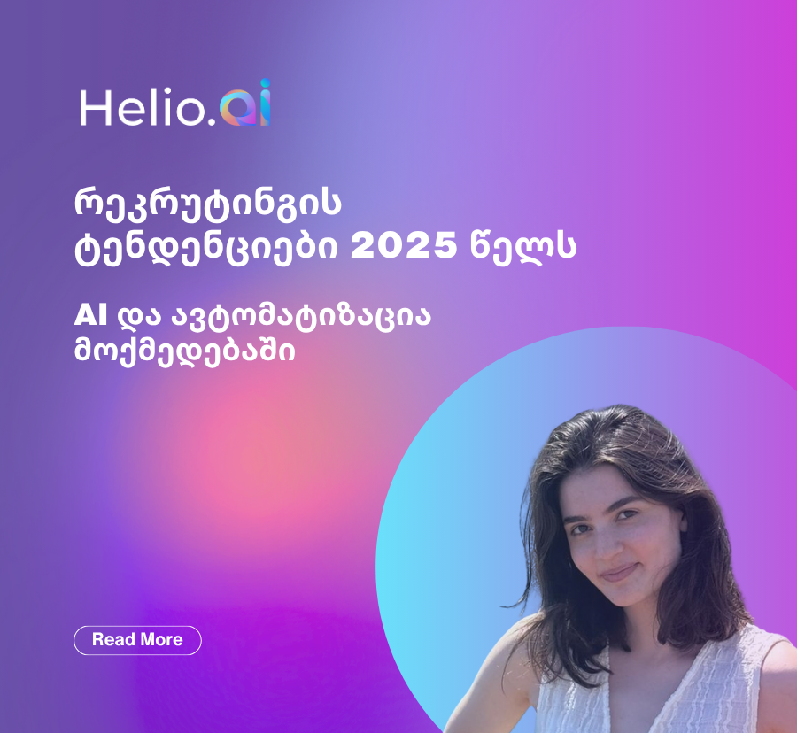 ქართულ ბაზარზე სადაზღვევო სექტორის ლიდერმა, თიბისი დაღვევამ, HR პროცესების ავტომატიაზიისთვის დანერგა პირველი ქართული AI რეკრუტინგ სოფტი - Helio AI, რომლის დამხარებითაც 60%-ით შეამცირა ყოველდღიურ დავალებებზე დახარჯული დრო და საშუალოდ 2-ჯერ გაზარდა შერჩევის ეფექტურობა.